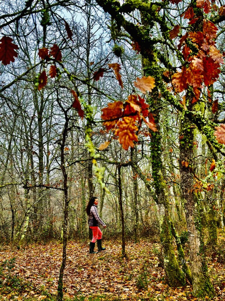 Il y a eu des temps dedans, à l’intérieur, des temps de préparation bien sûr … puis surtout beaucoup de temps dehors. Ce sont ces heures de présence attentive à mon environnement, en marchant le plus souvent, qui nourrissent en profondeur tout ce que je propose ensuite en accompagnement. Des temps dehors pour ressentir, pour m’inspirer, pour apprendre…. pour animer ensuite et être au contact des gens qui viennent vivre ces moments de reconnexion à la nature.