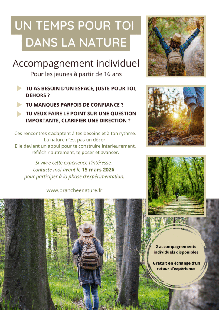 Chaque parcours est adapté au rythme du jeune, pour vivre pleinement la nature, expérimenter ses sensations et revenir à soi avec curiosité et confiance.